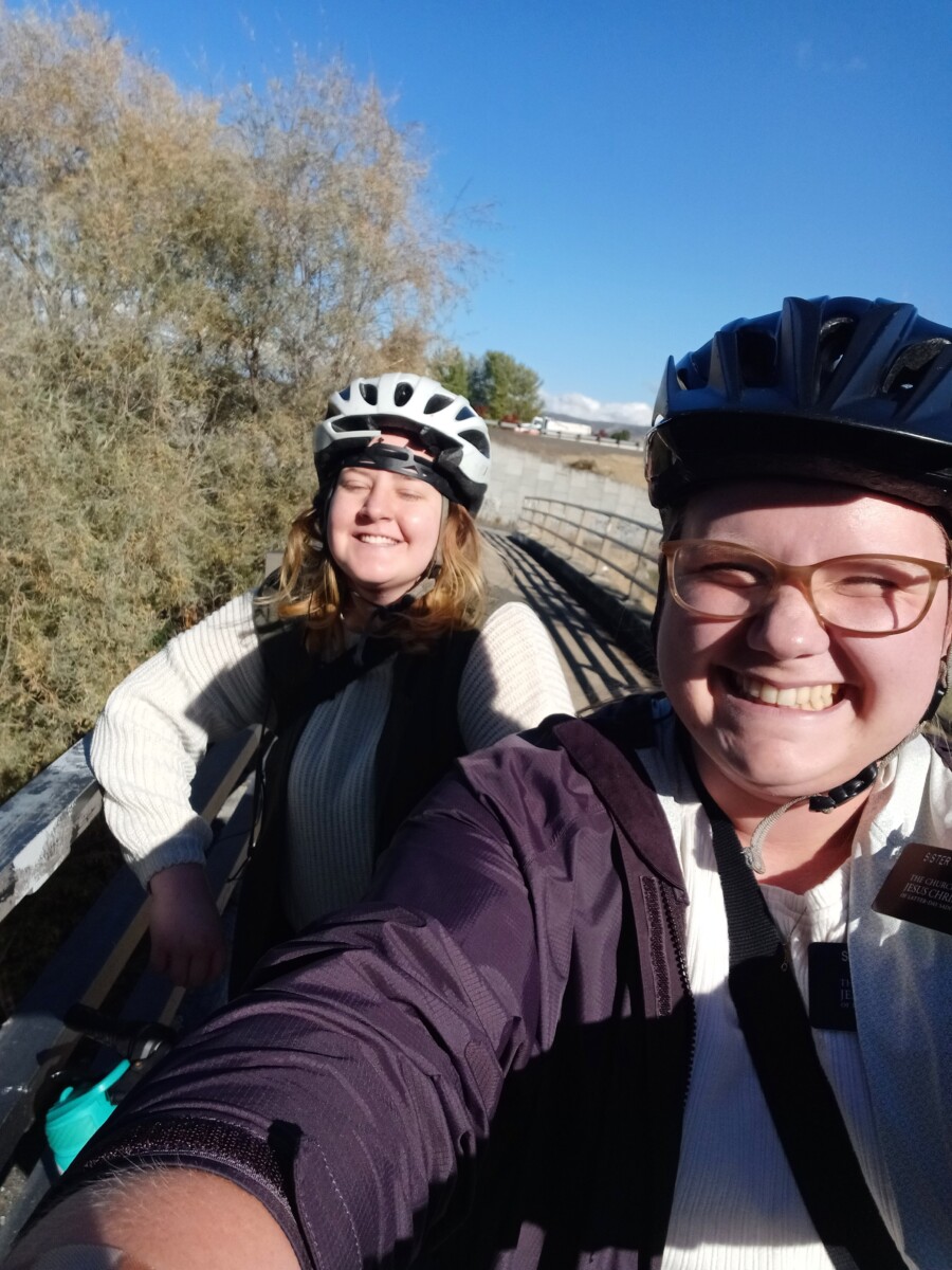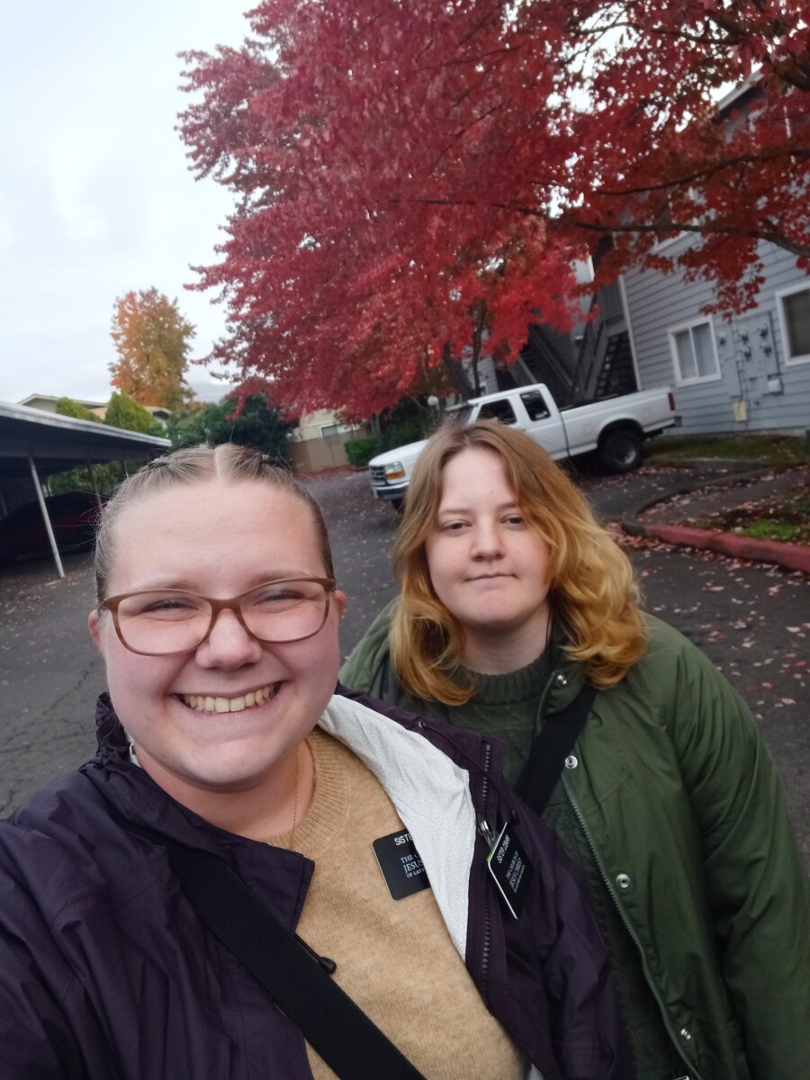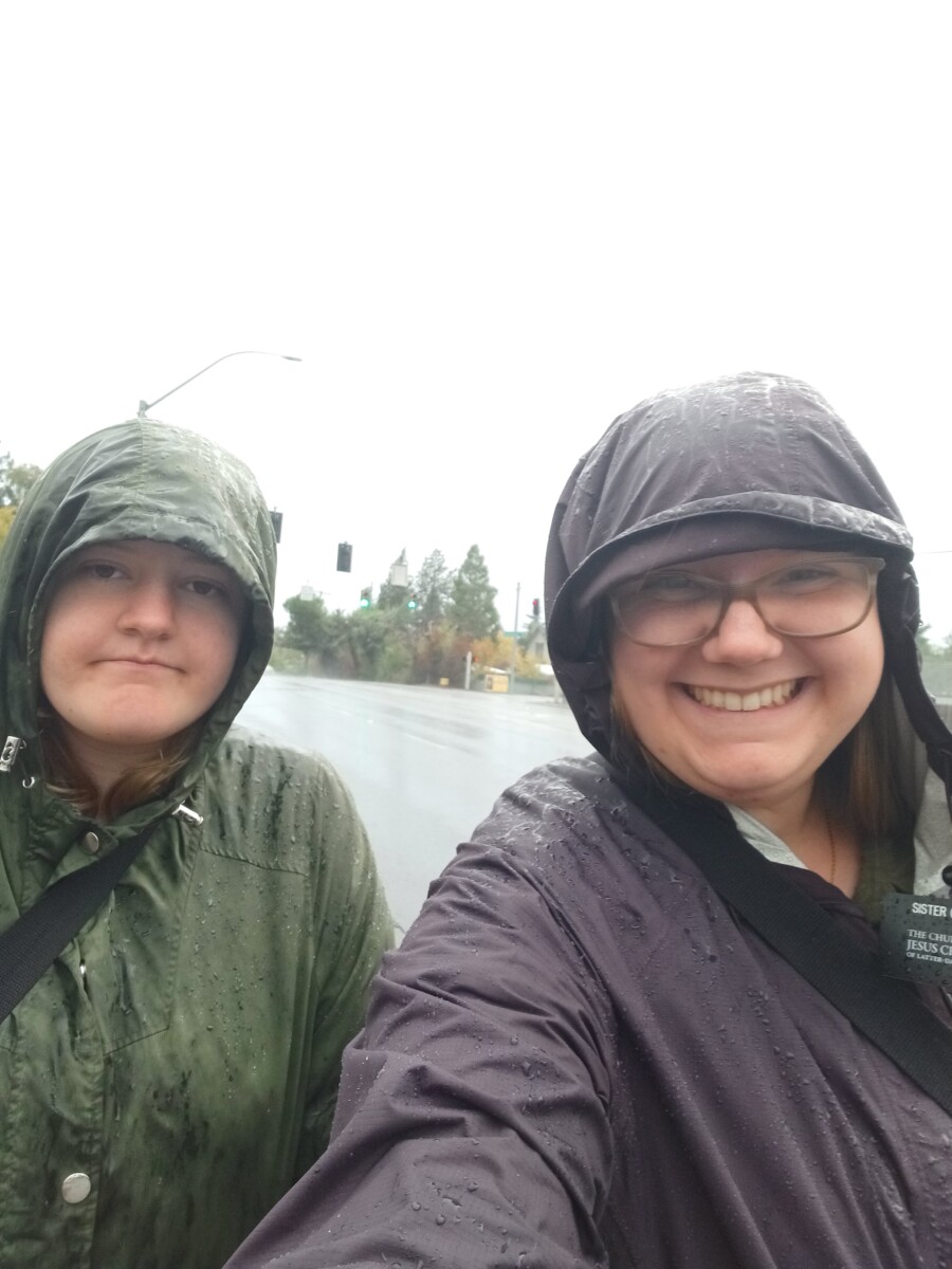 Wednesday was my first adventure biking in the rain. It wasn’t bad! We visited with some older members. They were funny! We had an awesome lesson with a less engaged member! She was so sweet and you could see she had a genuine interest in coming back! We then helped a less engaged member who was trying to figure out a website for her work. We came home and ate dinner, then we got to drive to our last lesson because they were so far and we had exchanges right after that. We exchanged with the Sisters in Gold Hill, Sister Bean and Sister Blake. Sister Blake came with me back to Medford 3rd. I was Sister Blakes STL when she first came to the mission in Roseburg.