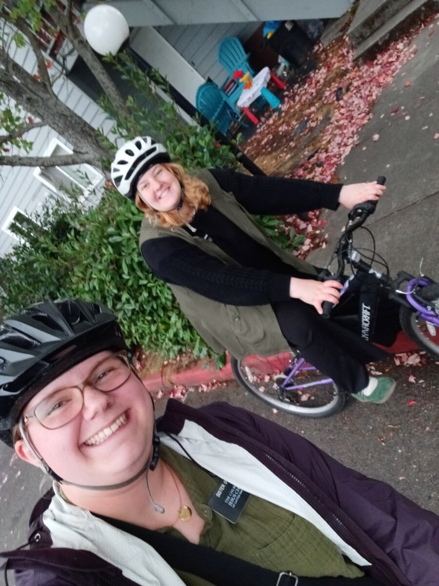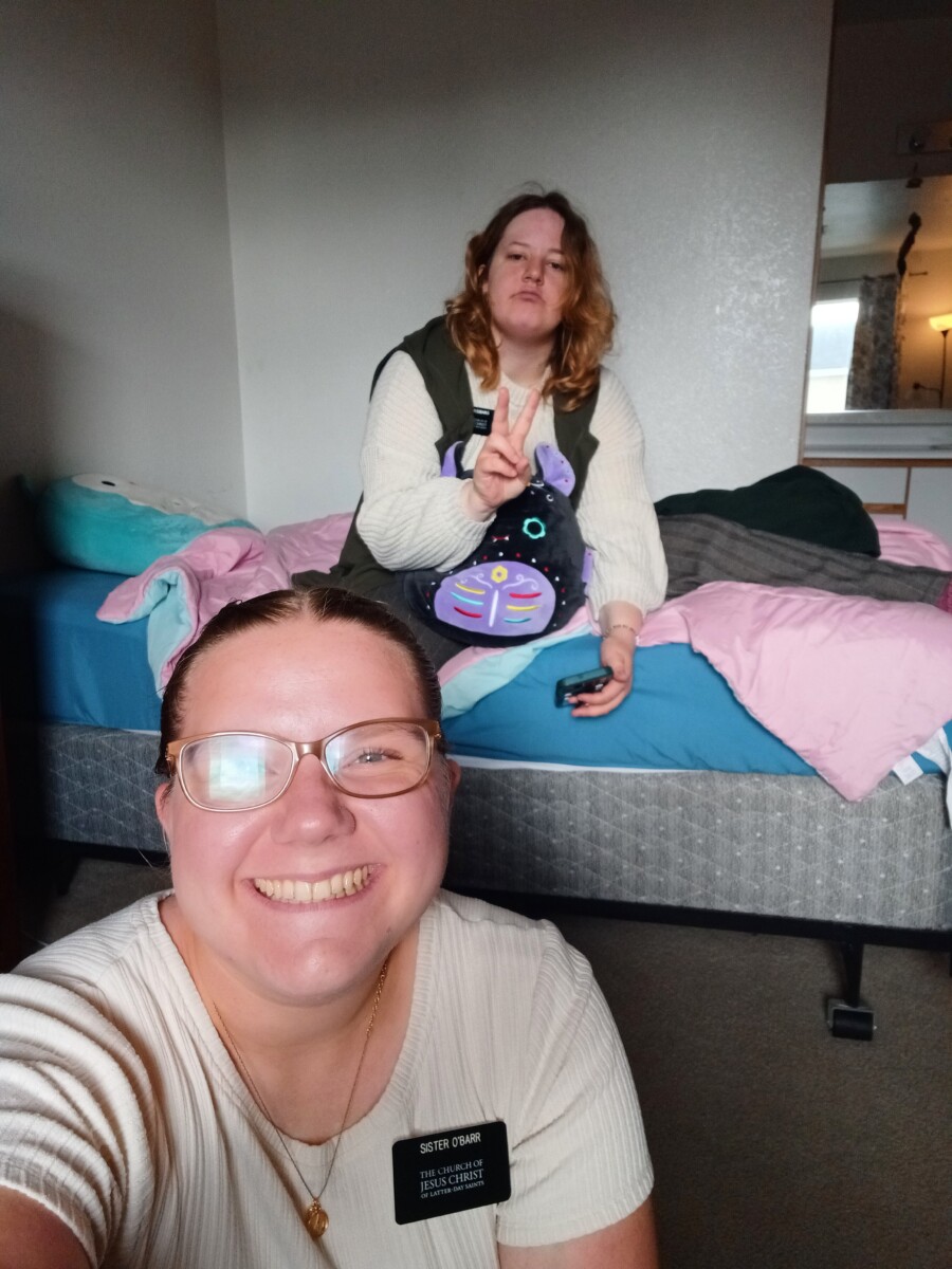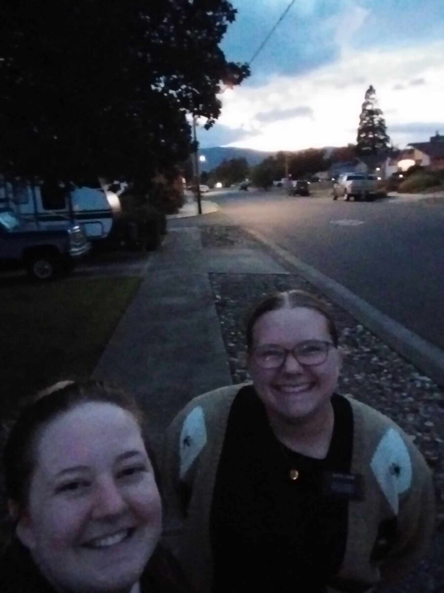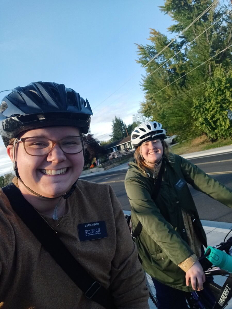 Wednesday was my first adventure biking in the rain. It wasn’t bad! We visited with some older members. They were funny! We had an awesome lesson with a less engaged member! She was so sweet and you could see she had a genuine interest in coming back! We then helped a less engaged member who was trying to figure out a website for her work. We came home and ate dinner, then we got to drive to our last lesson because they were so far and we had exchanges right after that. We exchanged with the Sisters in Gold Hill, Sister Bean and Sister Blake. Sister Blake came with me back to Medford 3rd. I was Sister Blakes STL when she first came to the mission in Roseburg.