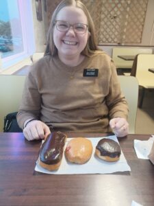 Wednesday was fun! We went and got donuts for my 100 days left! Sister Eubanks bishop from home was in town and she got permission for us to go to lunch with him. It was fun! It was cold and pouring rain though, which wasn't very fun to bike in. We visited with a couple other people. Then we had a meeting with the Stake president. We had a fun dinner with a member. Her grandson is so funny!