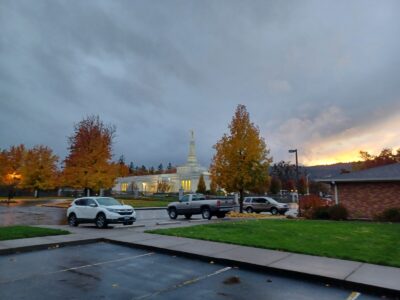 On Tuesday, we had MLC over zoom. It was pretty good. Nothing crazy this time. We called a bunch of people, then we got to go to the temple! It was awesome to get to go. We got to visit with a sweet less engaged family who lives up on a hill and you can see all of Medford.