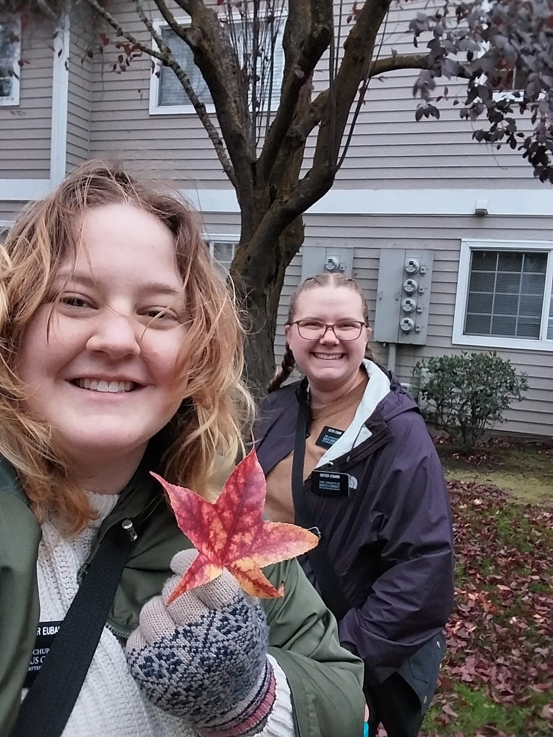 On Saturday, we had a funky day but it was super fun! One of our sisters was sick but they really wanted to go to this lesson with a new guy they were teaching. So we met up with them and I went with Sister Bean to their lesson. The guy was an hour and a half late… but it was a great lesson! Sister Eubanks and I then went to the Quackenbush's for some sewing and dinner! Sister Quackenbush has a whole shop for sewing. She helped me made this cute tote bag and Sister Eubanks made a scripture case. It was so fun! Then they fed us bangers and mash for dinner. It was a party! They also invited us over for Thanksgiving, which is going to be awesome! Then, I accidentally got us locked out of the apartment… We were going to visit some people and as we left, I soon realized that I had left the keys hanging up instead of putting them back in my bag. After a couple calls, we figured out who the housing people in Medford were and they came and unlocked the apartment for us. The wife was so funny because she just kept commending us for how much cleaner it was! They are getting us new blinds too and were super kind!