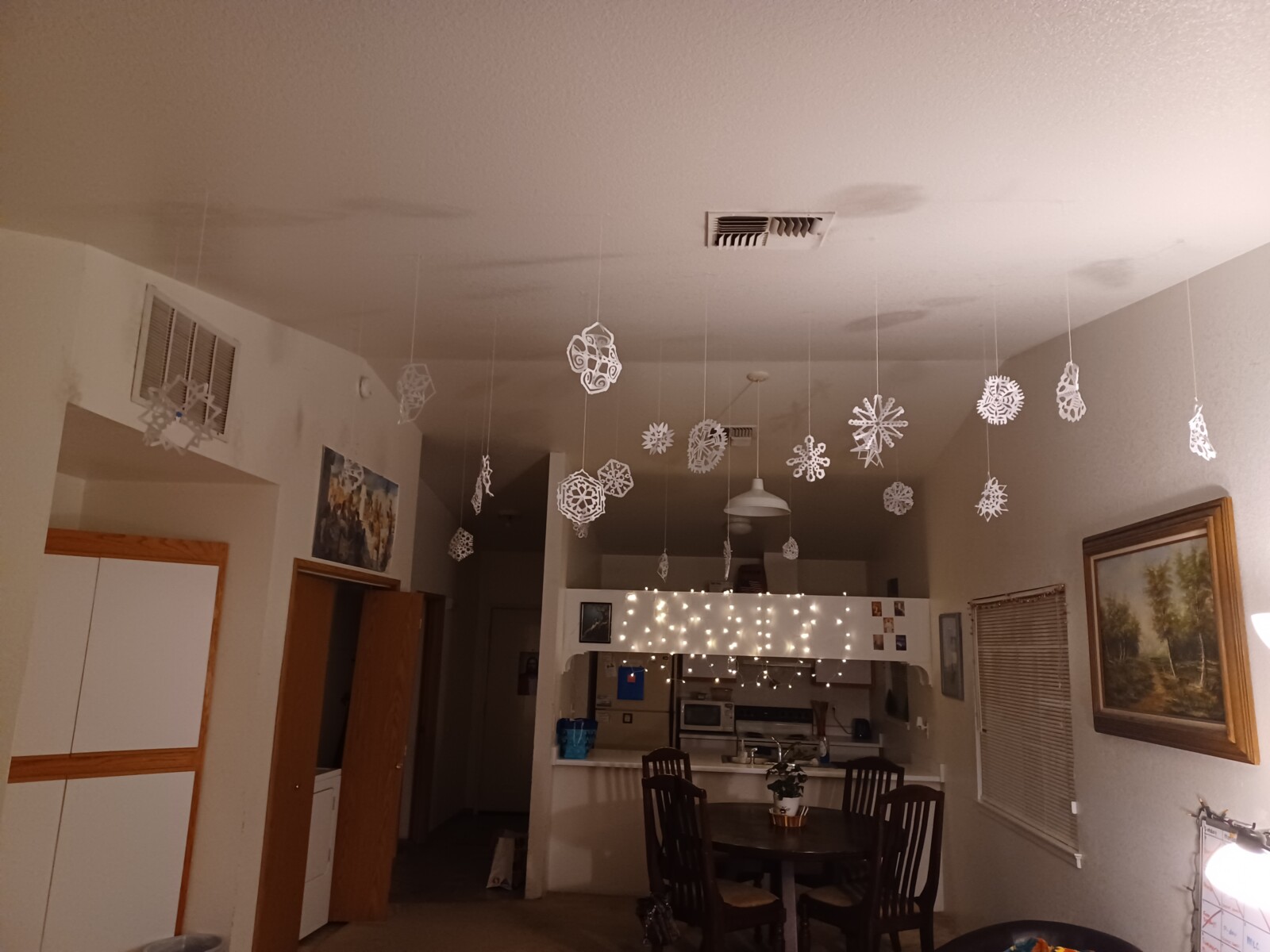 We had a good time at church, had some lessons and tracted a bit more. We ate some good leftovers for dinner. We've made a ton of snowflakes so we hung them all from our ceiling. It is so cute!!